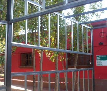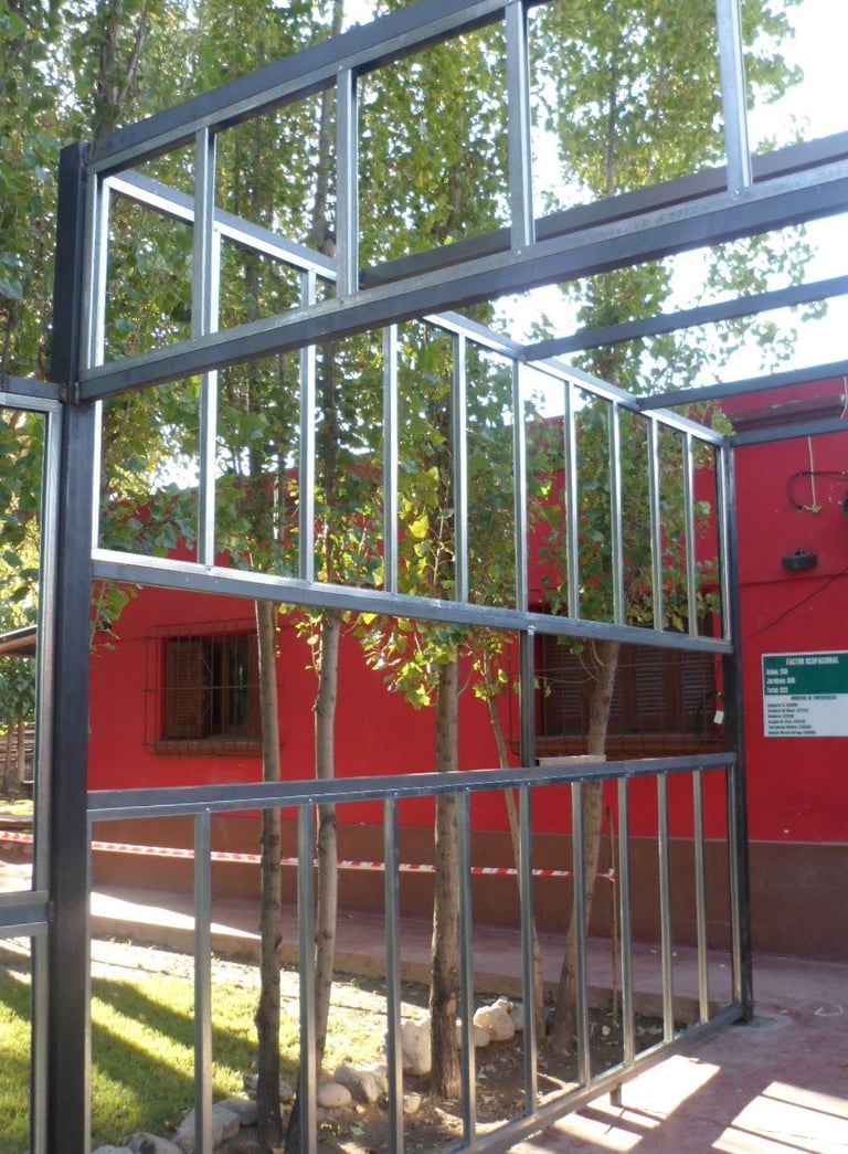 Construccion de fachada con estructura metalica soldada y perfiles atornillados para cubrir con placas de fibrocemento.